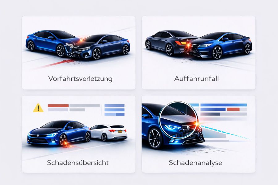 Wir begleiten Geschädigte nach Verkehrsunfällen, Parkschäden, Auffahrunfällen, Vorfahrtsverletzungen, Spurwechselunfällen und ähnlichen Schadenereignissen. Ziel ist eine klare, belastbare und vollständige Schadendokumentation, damit der richtige Weg für die weitere Regulierung frühzeitig aufgezeigt werden kann.